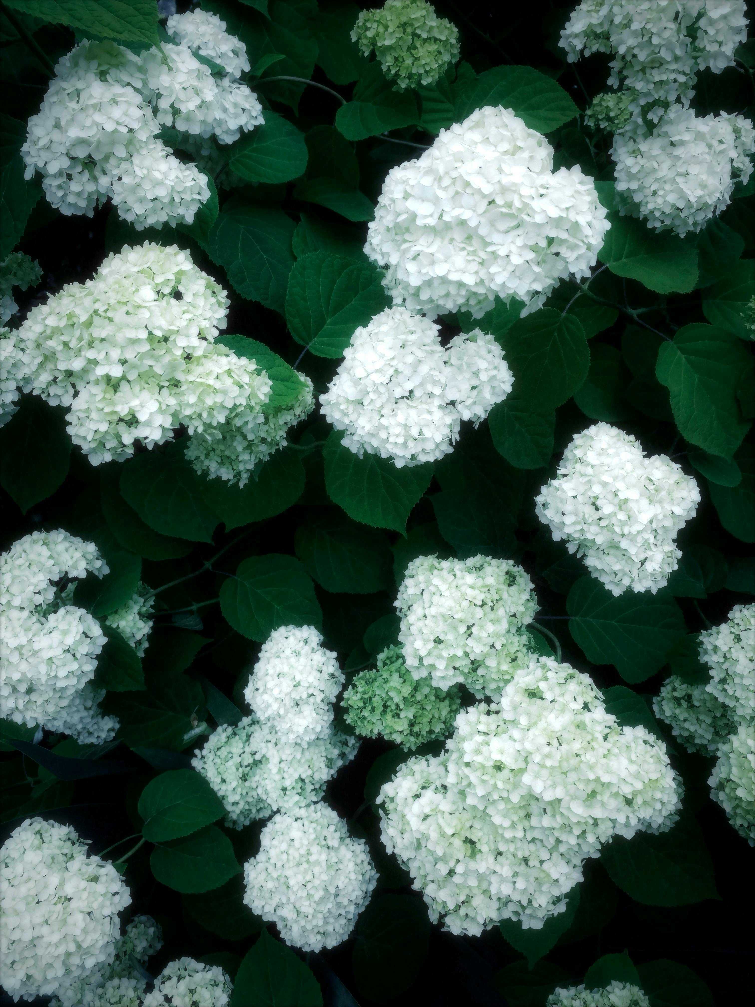 • 목수국(Hydrangea arborescens) : 하얀 구름처럼 둥근 꽃송이가 특징이며, 내한성이 강합니다.