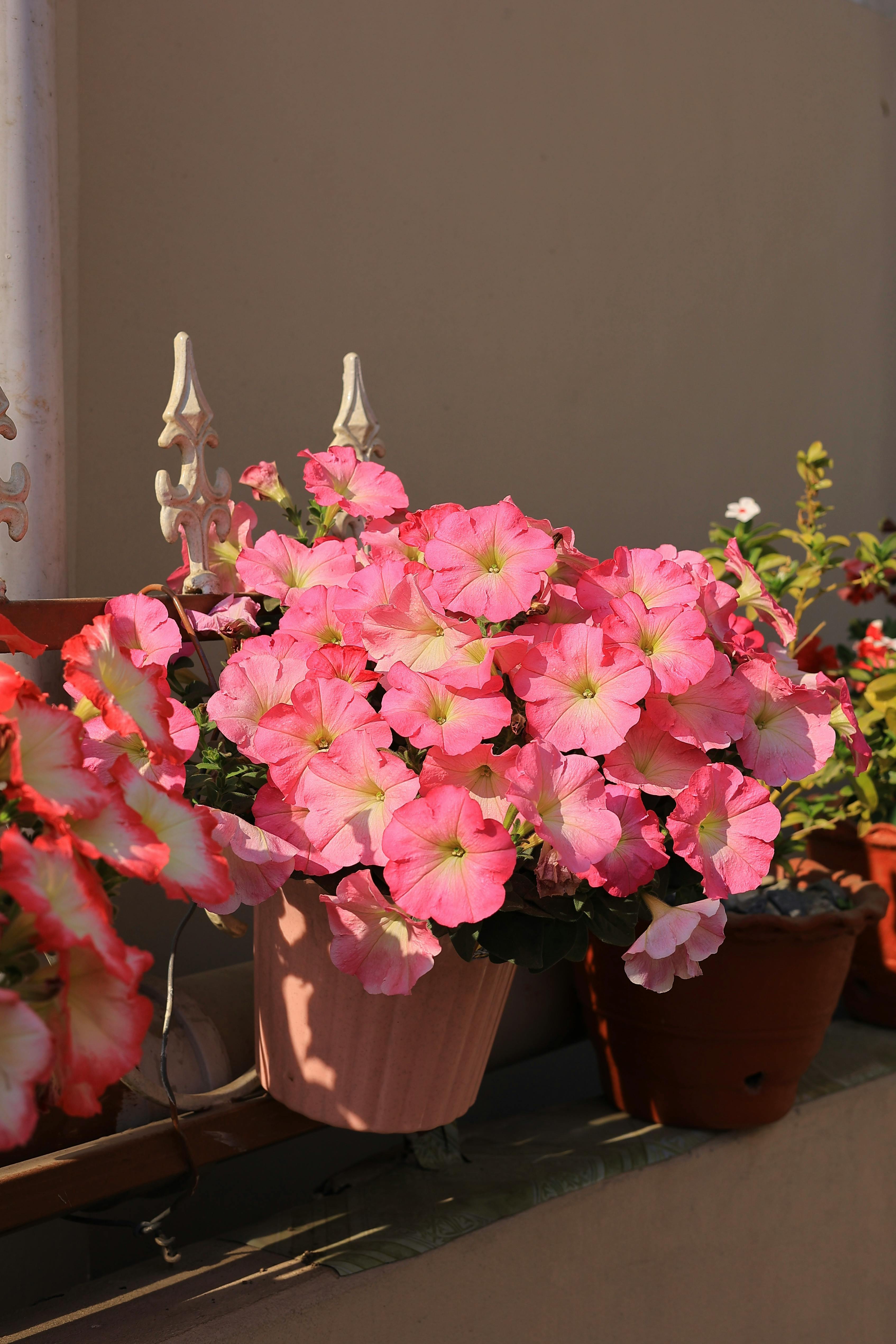 - 베란다 난간 걸이 화분: 다양한 색상의 페튜니아를 조합하면 화사한 분위기를 연출할 수 있습니다.