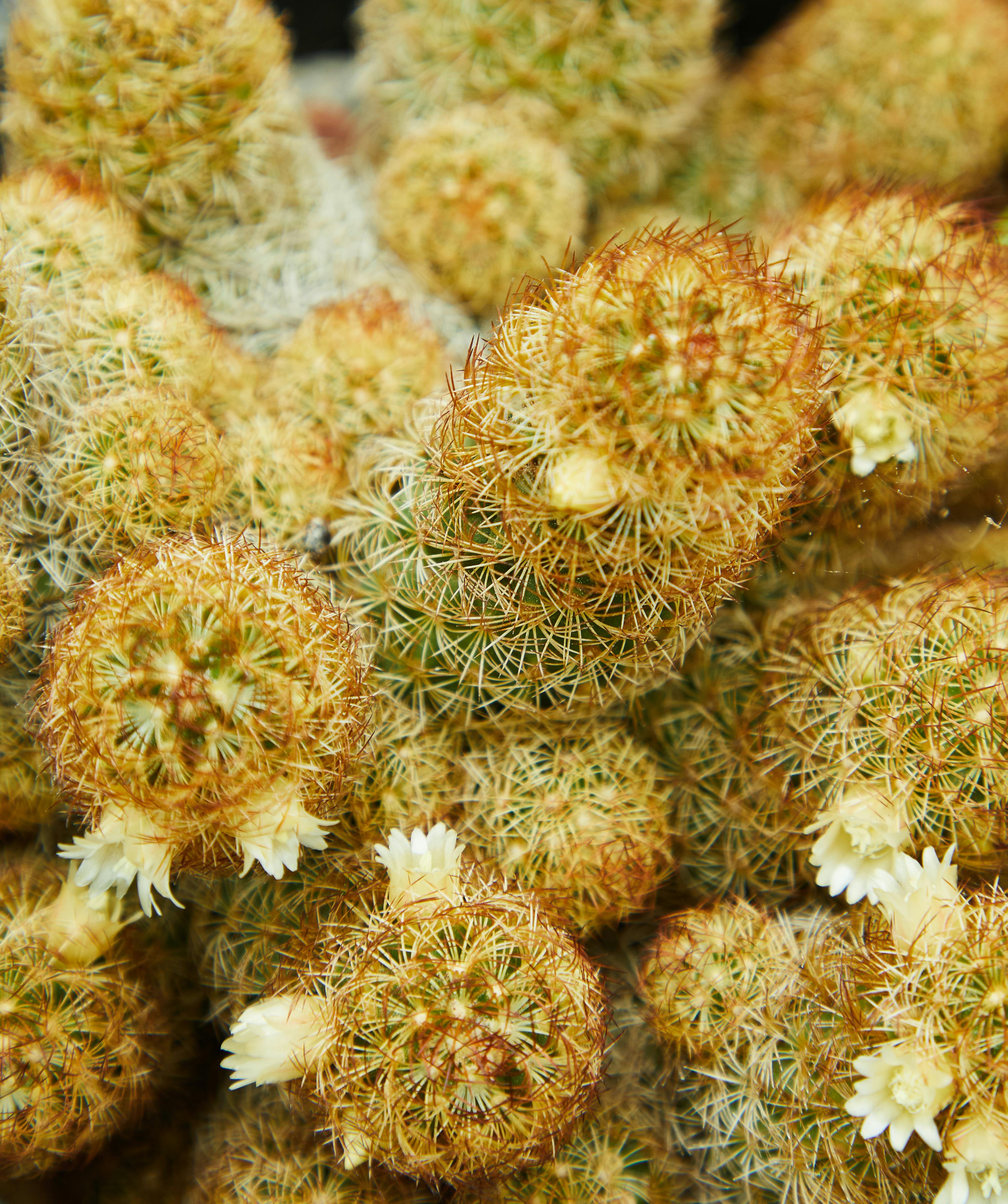 맘밀라리아는 척박한 사막에서 살아남기 위해 작고 단단한 몸체를 갖추었고, 스스로를 방어하기 위한 가시뿐만 아니라 수분 증발을 최소화하는 털 같은 구조를 발전시켰습니다. 일부 품종은 겨울이 다가오면 눈처럼 보이는 흰 털을 더 두텁게 만들어 체온을 보호하기도 하지요. 이 모습은 마치 겨울철 작은 짐승이 털을 세우고 버티는 것과도 닮았습니다.